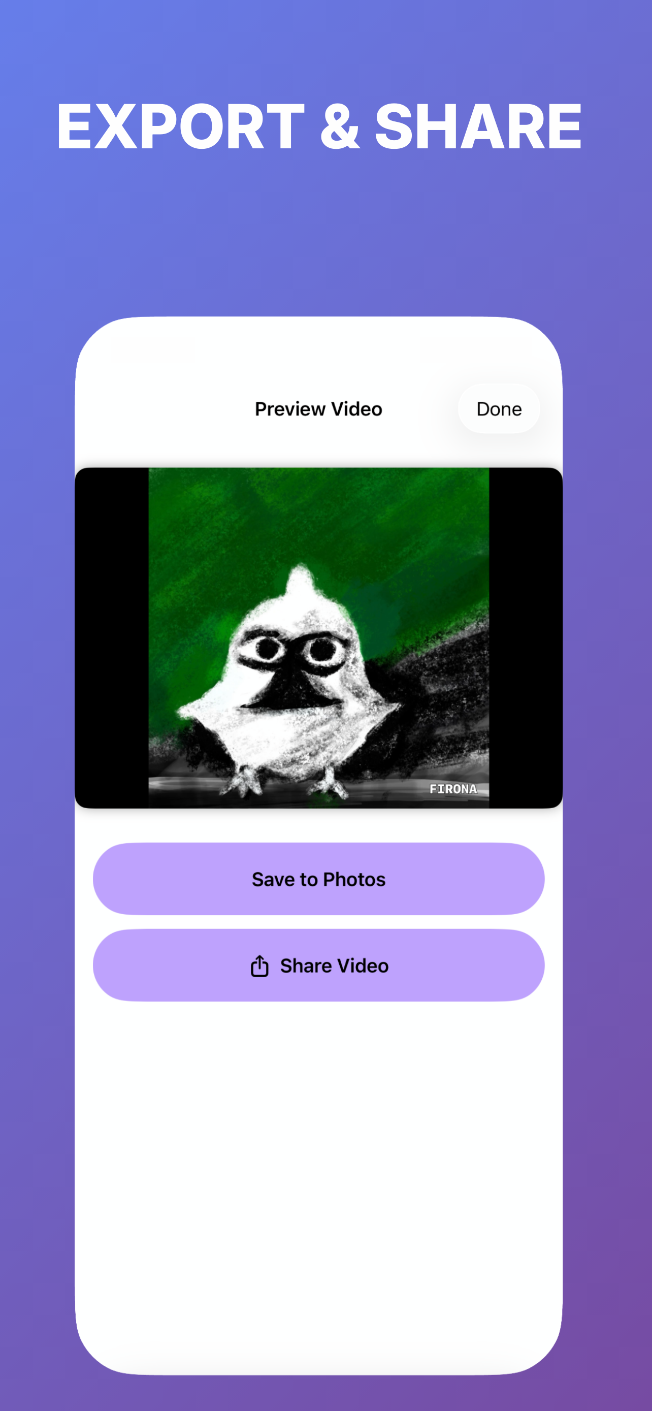 Export your work as high-quality MP4 Video, Animated GIFs, individual frames as PNG, or a Printable Flipbook (PDF).